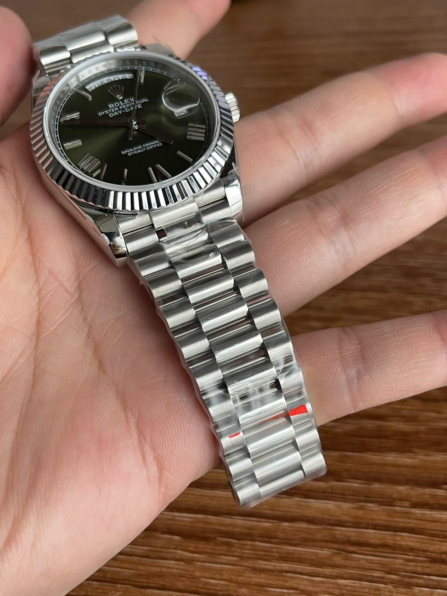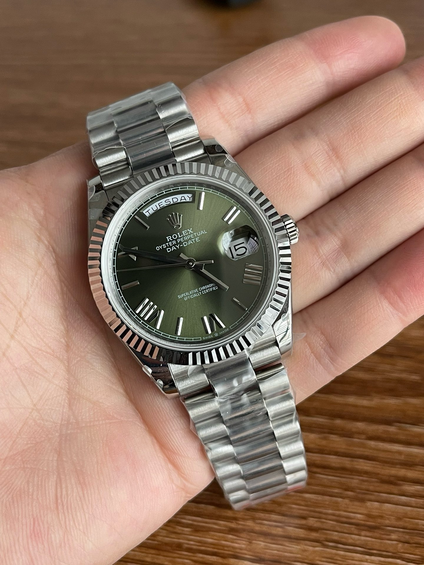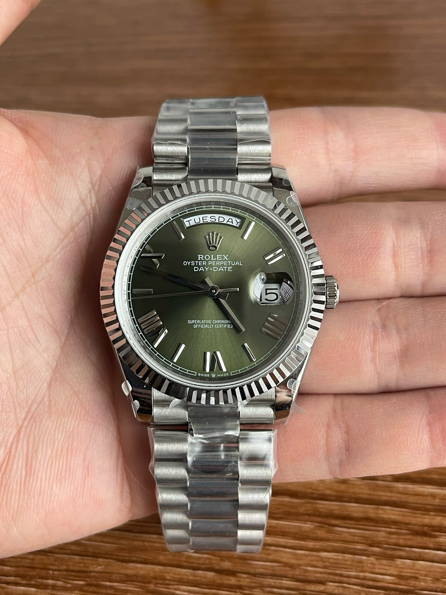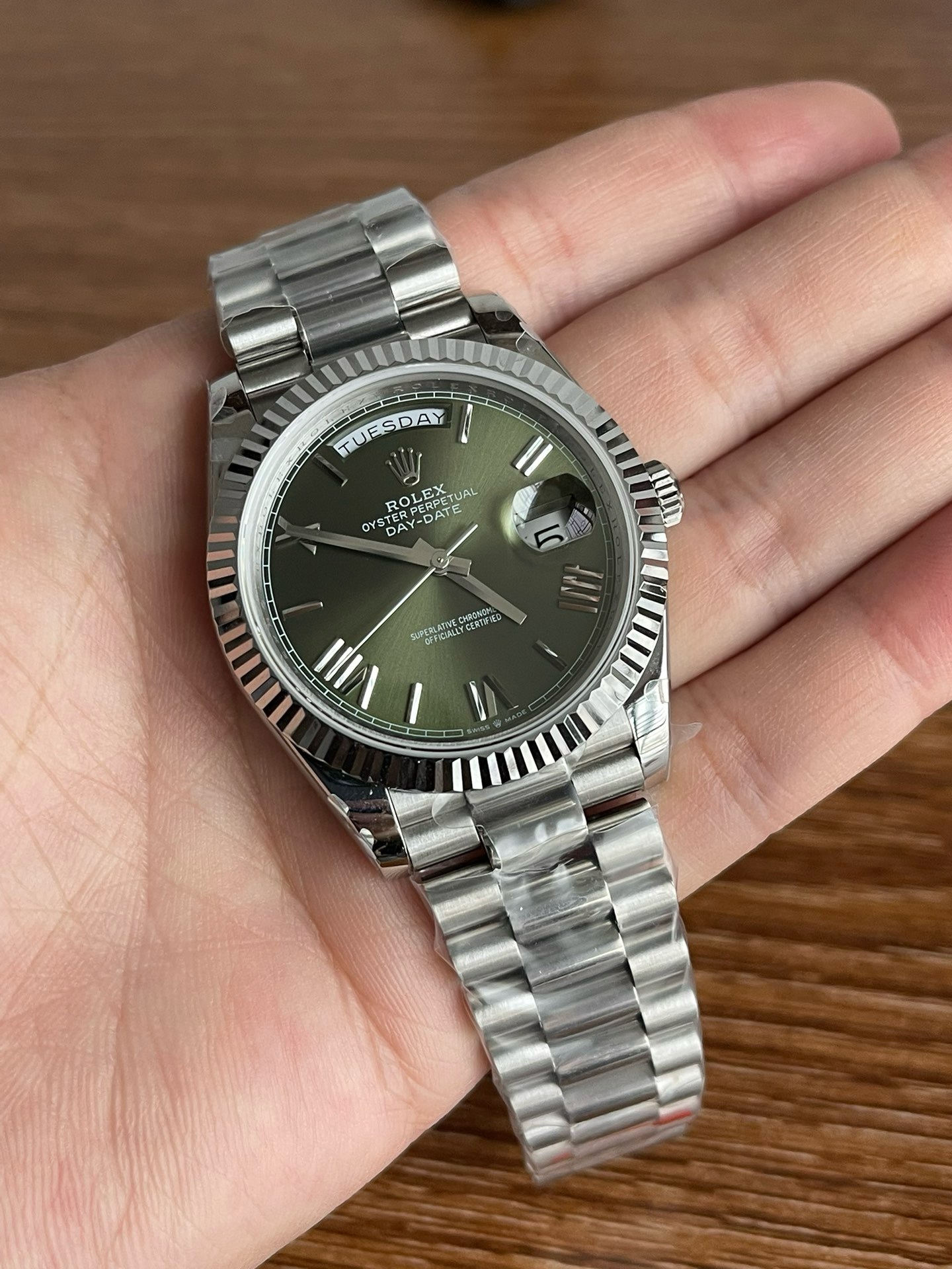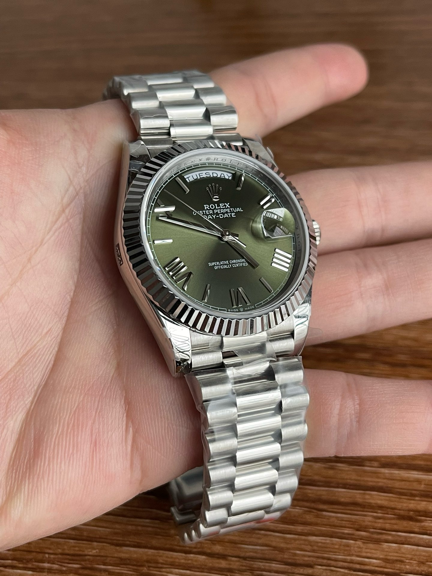 a rolex_day-date_40_president_platinum_olive_green_roman_dial_228236