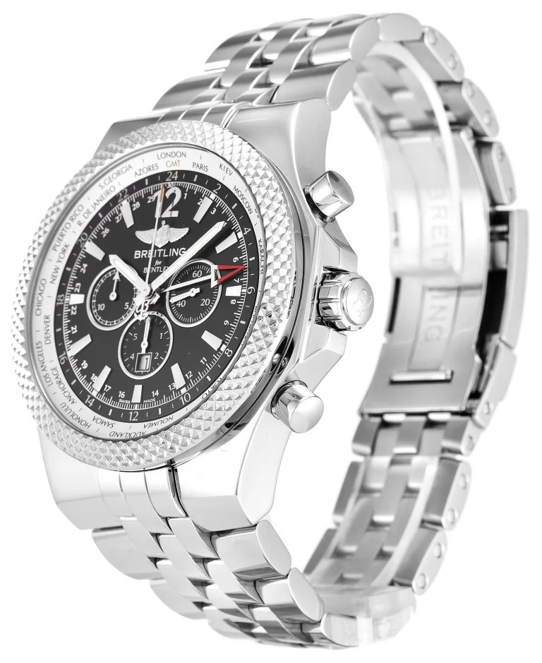 The Breitling Bentley GMT A47362 is a stand-out timepiece with its bold and commanding design. Benefitting from the association with the luxury car manufacturer, Bentley, this wristwatch screams sophistication and high quality. It also provides a fantastic level of functionality and durability, including a second time zone, perfect for globetrotters.