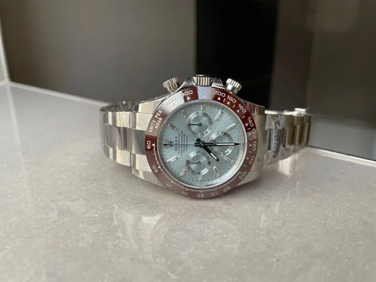 Iconic Styling: The Rolex Daytona 116506 is a gorgeous timepiece that features an ice blue dial, crystal markers, a stainless steel bracelet, and a brown ceramic bezel. The extraordinary accuracy of the SA4130 Super Clone movement styles this watch towards perfectionism.