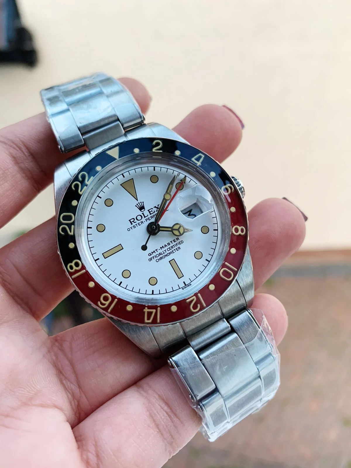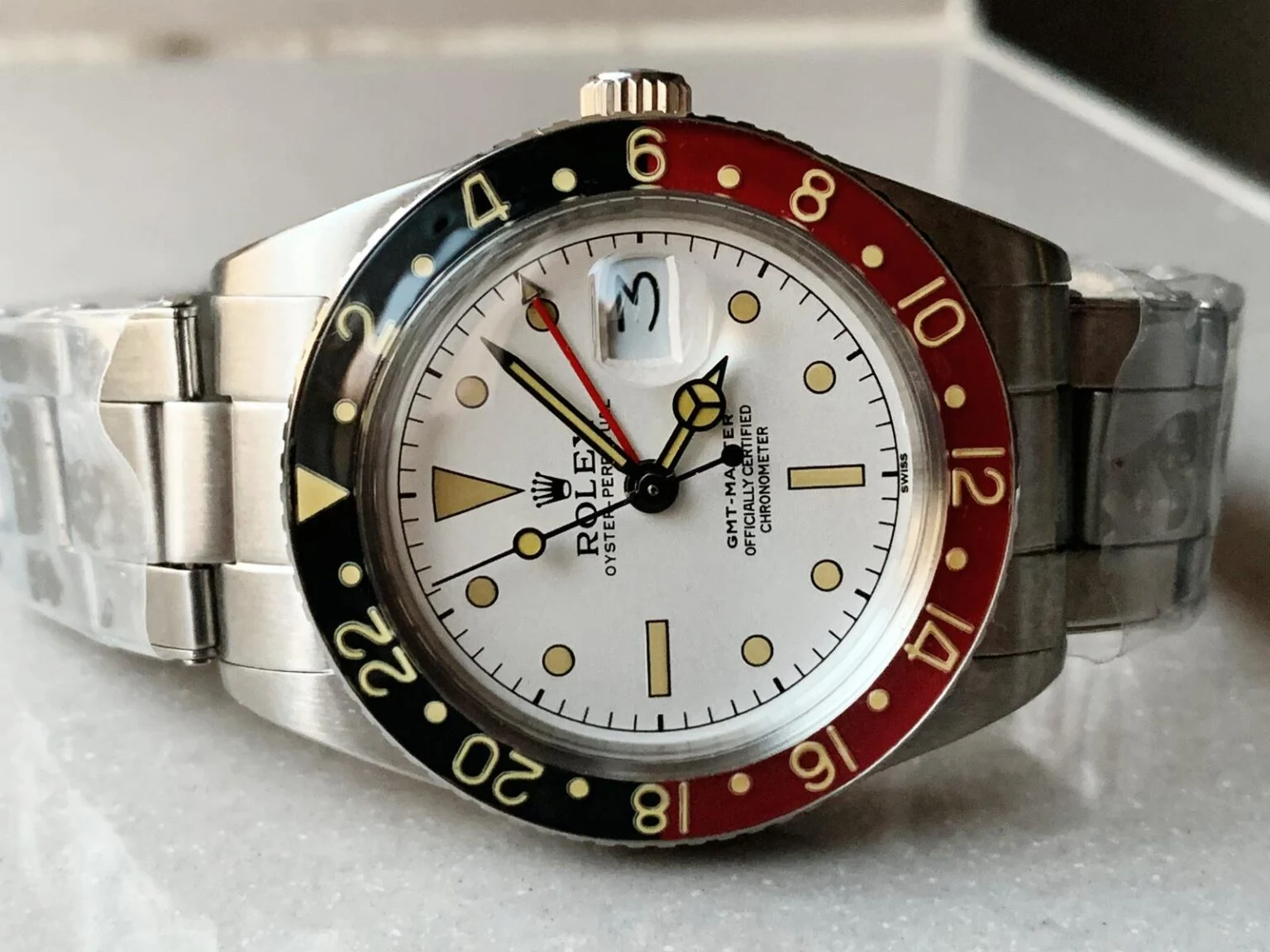 Rolex Vintage GMT Master 6542 Black/Red Bezel White Dial on SS Bracelet A2836 Super Clone